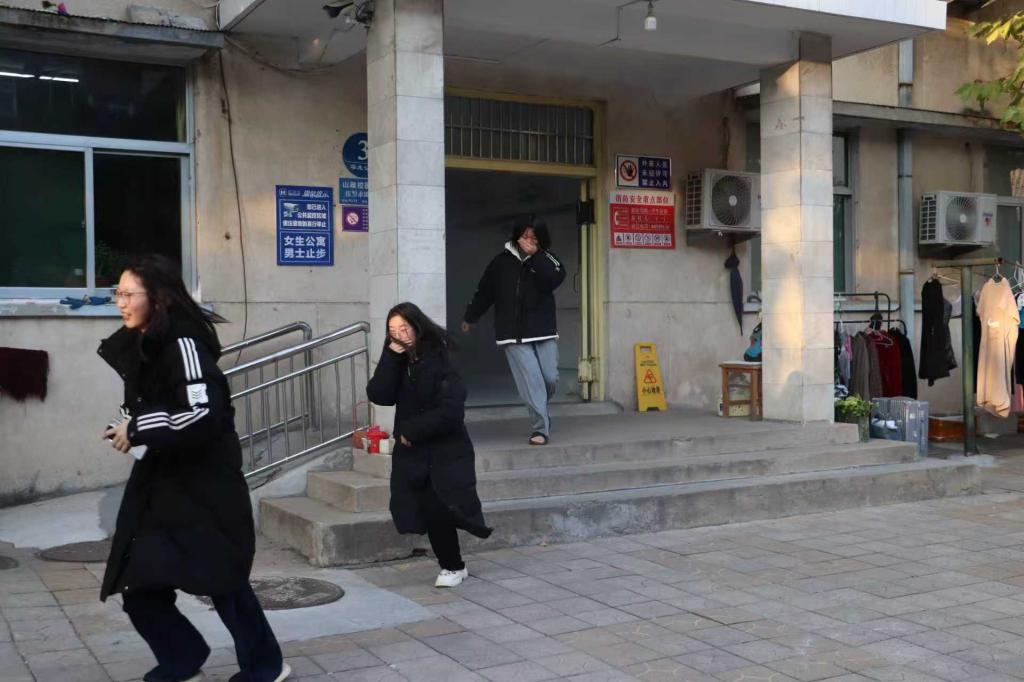 随着警报声响起,消防演练正式开始。同学们迅速响应,弓身低姿,紧捂口鼻,沿着预定疏散路线快速向安全区域撤离,展现了同学们良好的应急素养与纪律意识。在消防器材使用培训环节,工作人员现场演示了灭火器的正确操作方法,细致讲解了使用注意事项,并组织同学们进行实操练习,使同学们更直观地掌握了消防器材的使用技巧。