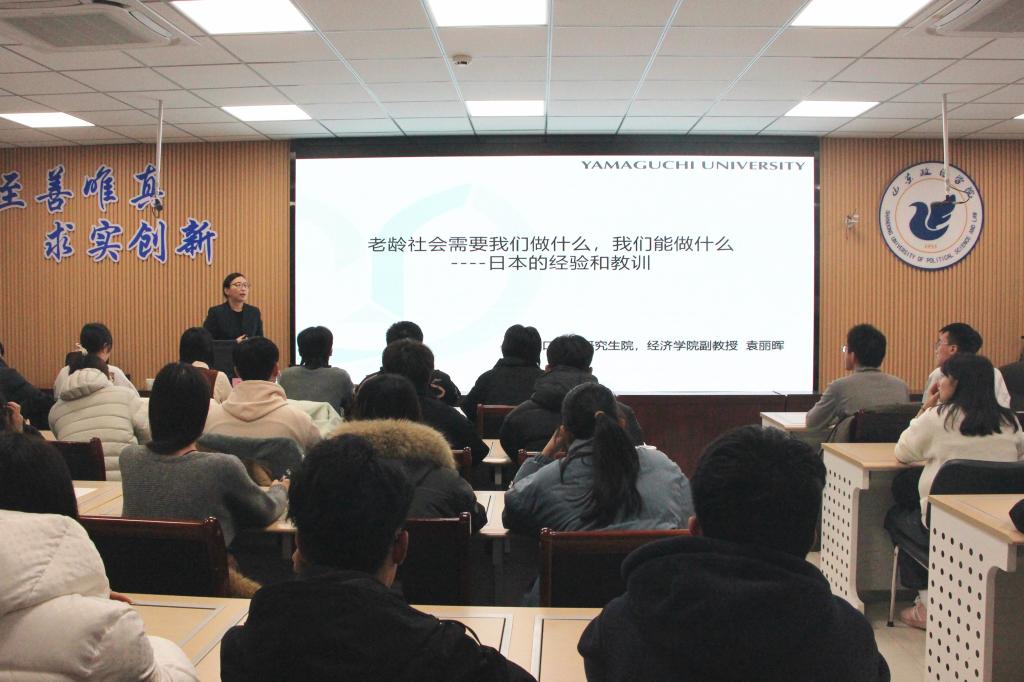 为庆祝建校70周年,拓展师生国际学术视野,赋能养老服务管理专业人才培养,12月22日,公共管理学院在尚德楼406会议室举办第二十三期“公管学术论坛”。本次论坛邀请日本国立山口大学经济学院袁丽晖副教授作题为《借鉴与反思:日本老龄社会治理的经验教训及对我国的启示》的专题授课,学院党委副书记、院长来丽锋出席,副院长伊庆山主持论坛,2025级养老服务管理本科班全体学生参加。