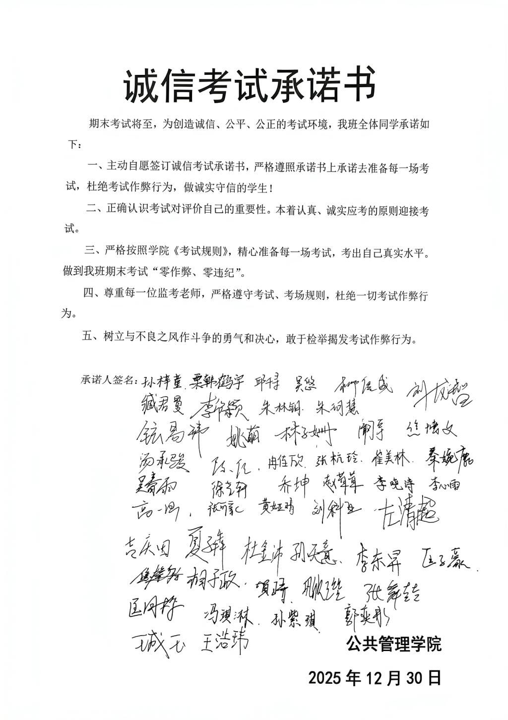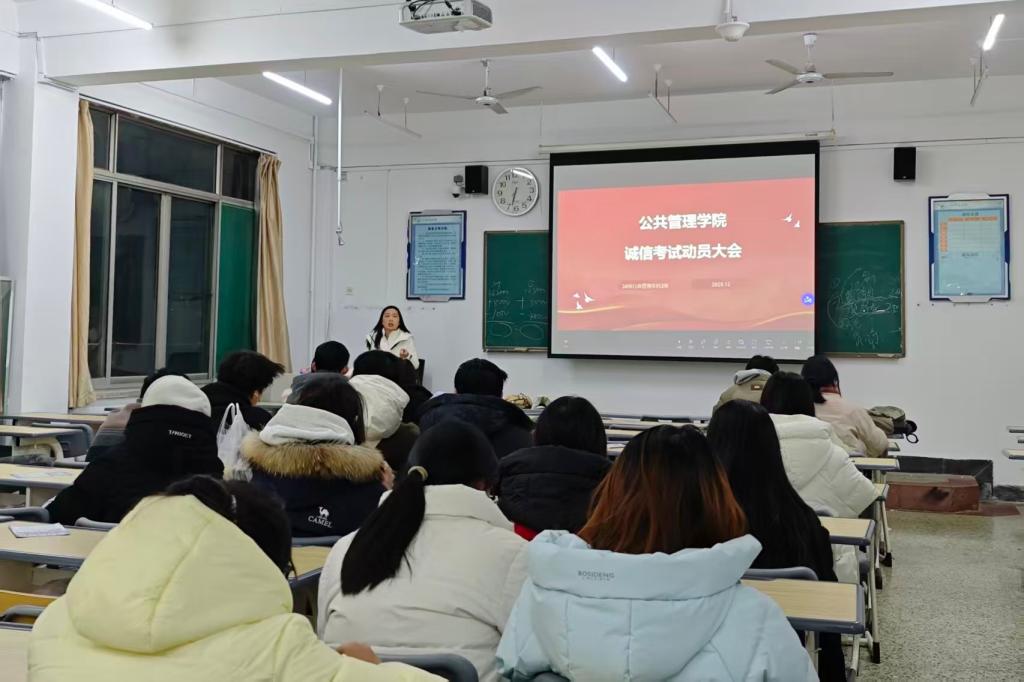 为深入推进学院学风建设,强化学生诚信应考意识,营造公平公正的考试环境,在期末复习周期间,公共管理学院开展了诚信考试主题教育活动。