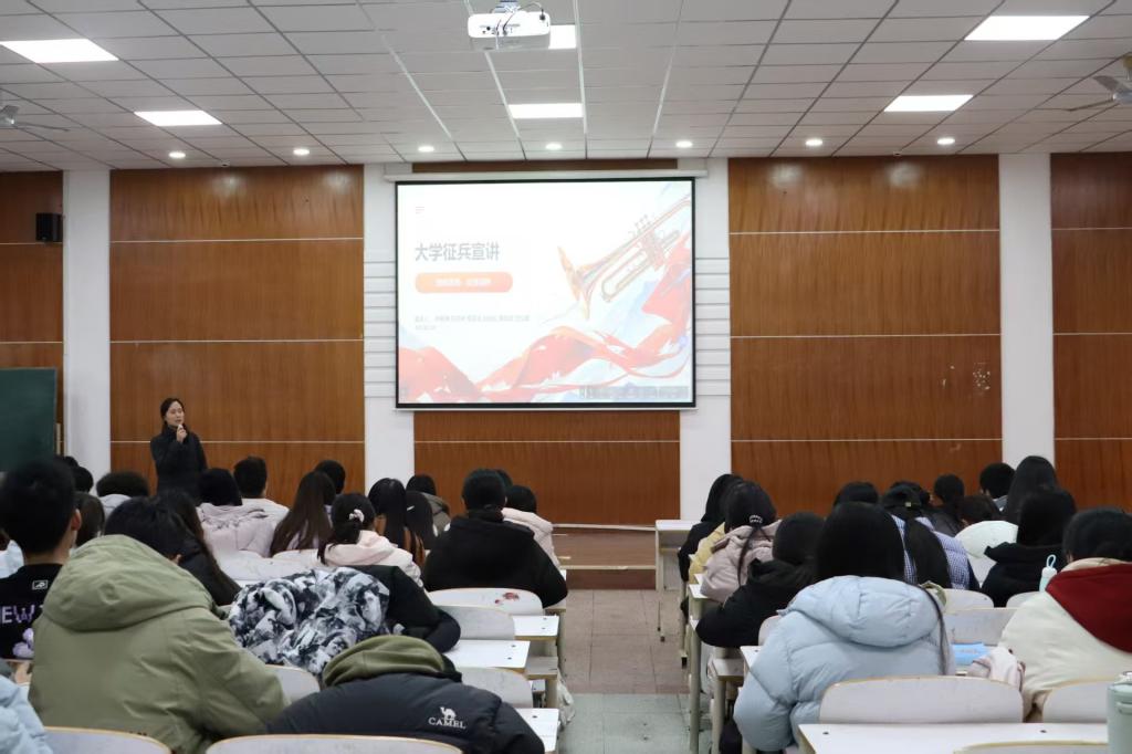 为弘扬爱国主义精神,激发同学们的爱国热情与责任担当,12月15日,公共管理学院于笃行楼502教室开展两场国防安全教育宣讲。学院党委副书记毕晓平,辅导员乔杉、杨秀婷以及2025级全体学生参加,学院组建的涵盖六个军兵种的征兵宣讲团进行宣讲。